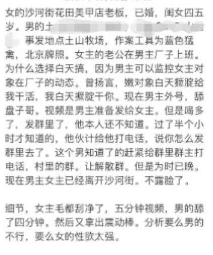 沙河街花田美甲店老板娘偷情老公上司车震视频喝醉被误发到群里