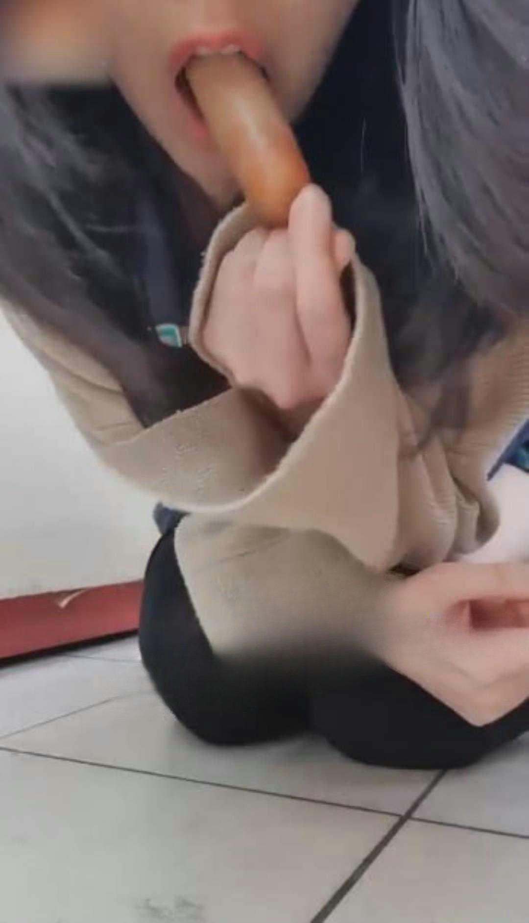 韩国超商售货员 上班期间用火腿肠进菊花 插完之后舔舔再吃下去 真会玩